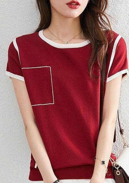 レディース トップス Tシャツ 袖あり 半袖 ラウンドネック かわいい 大人可愛い 大人 上品 おしゃれ お洒落 大人可愛い 大人女子 S M L XL 2XL 赤 レッド 紫 パープル 無地 夏 20代 30代 オフィス 通勤 | Rena 韓国ファッション レディースアパレル