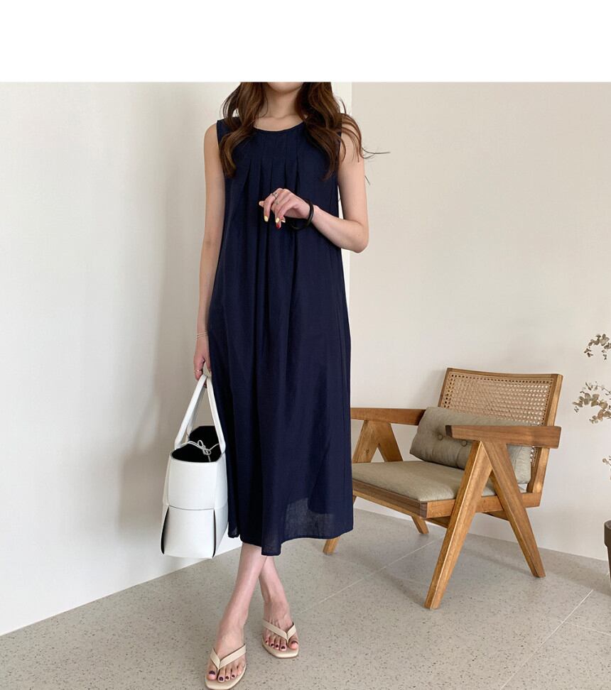 レディース ワンピース ロング丈 ノースリーブ ラウンドネック Aライン プリーツ かわいい 大人可愛い きれいめ シンプル カジュアル 大人 上品 おしゃれ お洒落 大人可愛い 大人女子 こなれ感 エレガント フリーサイズ ブラウン ベージュ ネイビー 大人カラー 無地 春 夏 10代 20代 30代 40代 50代 女性用 オフィス ビジネス OL 通勤 デート お出かけ 女子会 休日 普段使い ファッション コーデ スタイル モテ 送料無料 | Rena 韓国ファッション レディースアパレル
