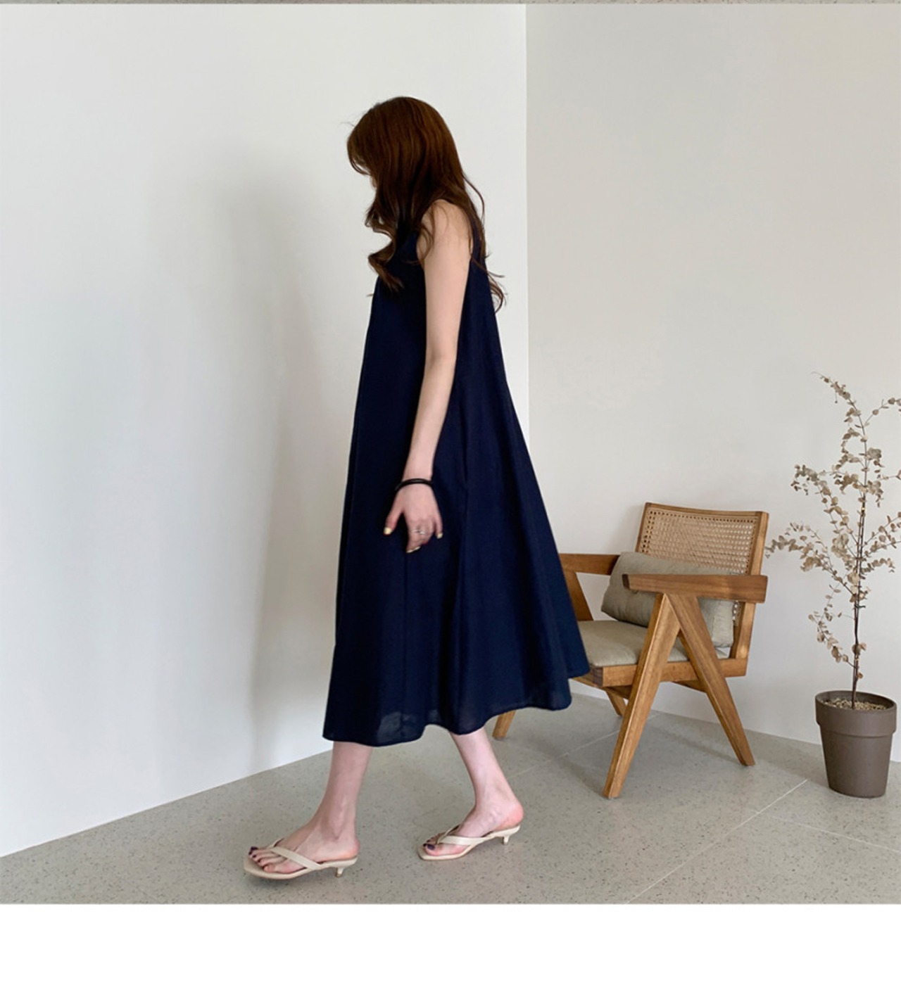 ノースリーブのAラインワンピースです。