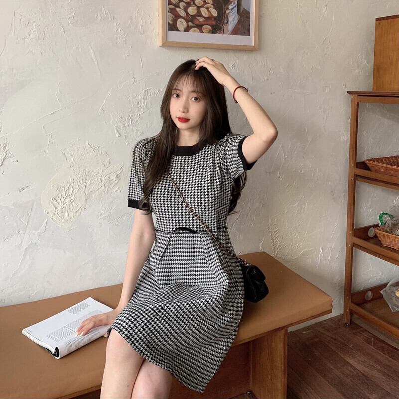 レディース ワンピース ニット ひざ丈 袖あり 半袖 ラウンドネック Aライン ニット かわいい 大人可愛い きれいめ シンプル カジュアル 大人 上品 おしゃれ お洒落 大人可愛い 大人女子 こなれ感 キュート ガーリー エレガント M L XL 2XL 3XL 4XL 白 黒 大人カラー 千鳥格子 春 夏 10代 20代 30代 女性用 オフィス ビジネス OL 通勤 学生 デート お出かけ 女子会 休日 旅行 普段使い ファッション コーデ スタイル モテ 送料無料 | Rena 韓国ファッション レディースアパレル