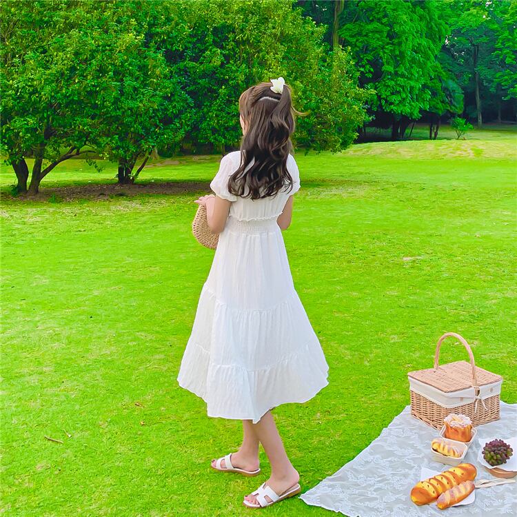 シフォン素材がかわいらしい白のワンピースです。
