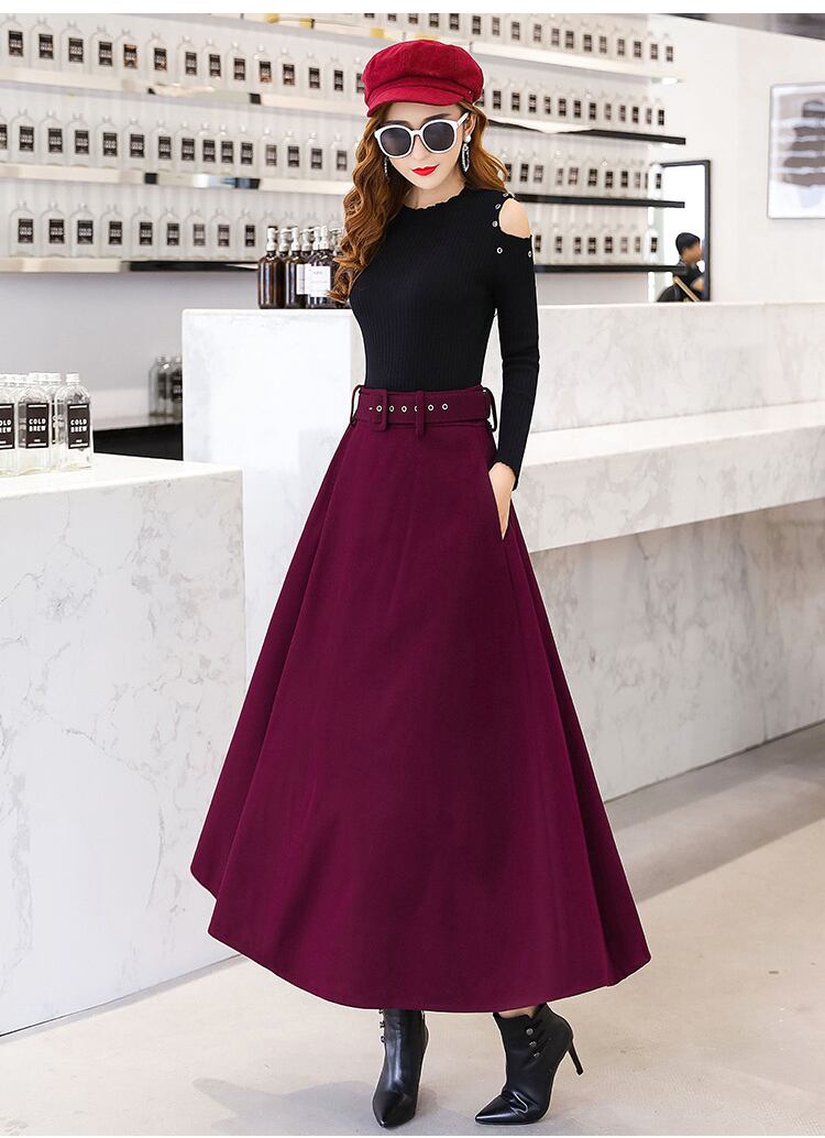 レディース スカート フレアスカート ロング Aライン ベルト ウール かわいい 大人可愛い きれいめ シンプル カジュアル 大人 上品 おしゃれ お洒落 かっこいい レトロ 大人可愛い こなれ感 エレガント S M L XL 2XL ブラック 茶色 グレー ワインレッド 大人カラー キャメル 無地 秋 冬 10代 20代 30代 40代 50代 女性用 オフィス ビジネス OL 通勤 デート お出かけ 女子会 休日 旅行 普段使い ファッション コーデ スタイル 脚長 送料無料 | Rena 韓国ファッション レディースアパレル