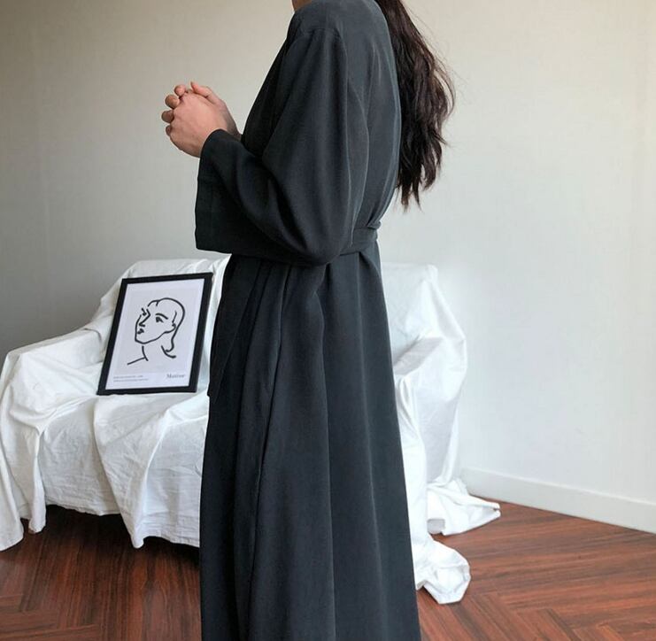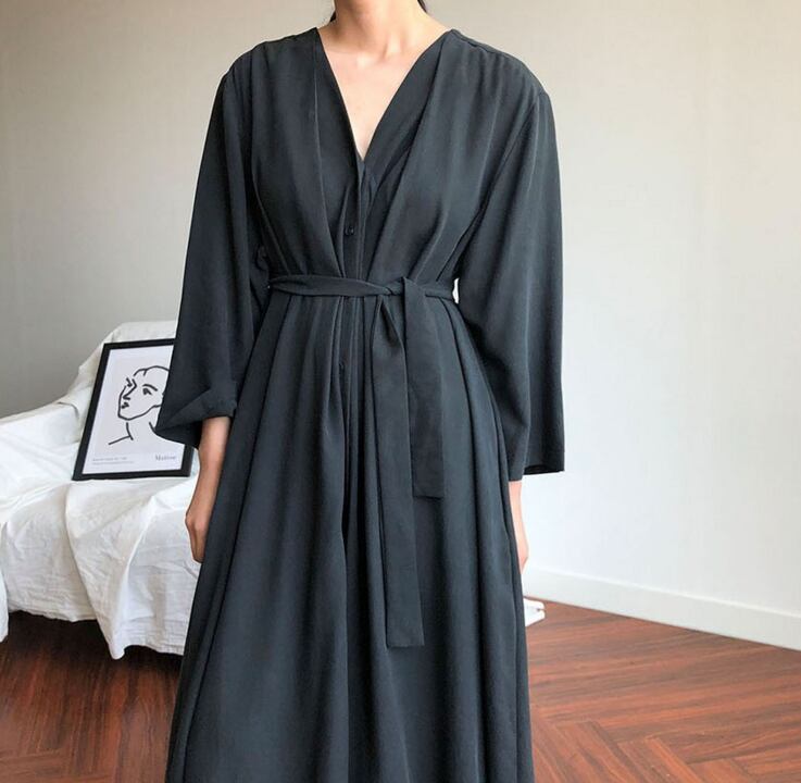 レディース ワンピース マキシ丈 袖あり 長袖 Vネック ワイド ベルト 大人可愛い きれいめ シンプル カジュアル 大人 上品 おしゃれ お洒落 かっこいい レトロ 大人可愛い 大人女子 こなれ感 ラフ フリーサイズ ブラック ベージュ 大人カラー 無地 春 秋 20代 30代 40代 50代 女性用 デート お出かけ 女子会 休日 旅行 普段使い ファッション コーデ スタイル 楽ちん 送料無料 ゆったり | Rena 韓国ファッション レディースアパレル