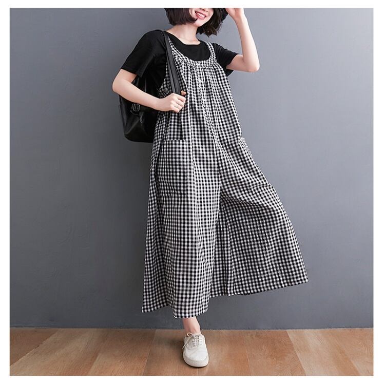 レディース パンツ 9分丈 袖なし 襟なし かわいい 大人可愛い カジュアル おしゃれ お洒落 大人可愛い こなれ感 ラフ キュート 抜け感 ゆったり ゆる 黒 ブラック ネイビー チェック柄 春 夏 10代 20代 30代 学生 通学 デート お出かけ 公園デビュー 女子会 休日 アウトドア イベント 着回し 普段使い ファッション コーデ スタイル 楽ちん 送料無料 | Rena 韓国ファッション レディースアパレル