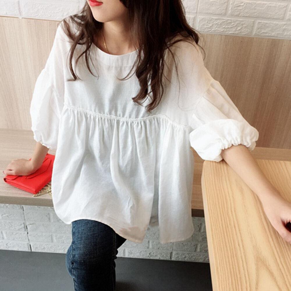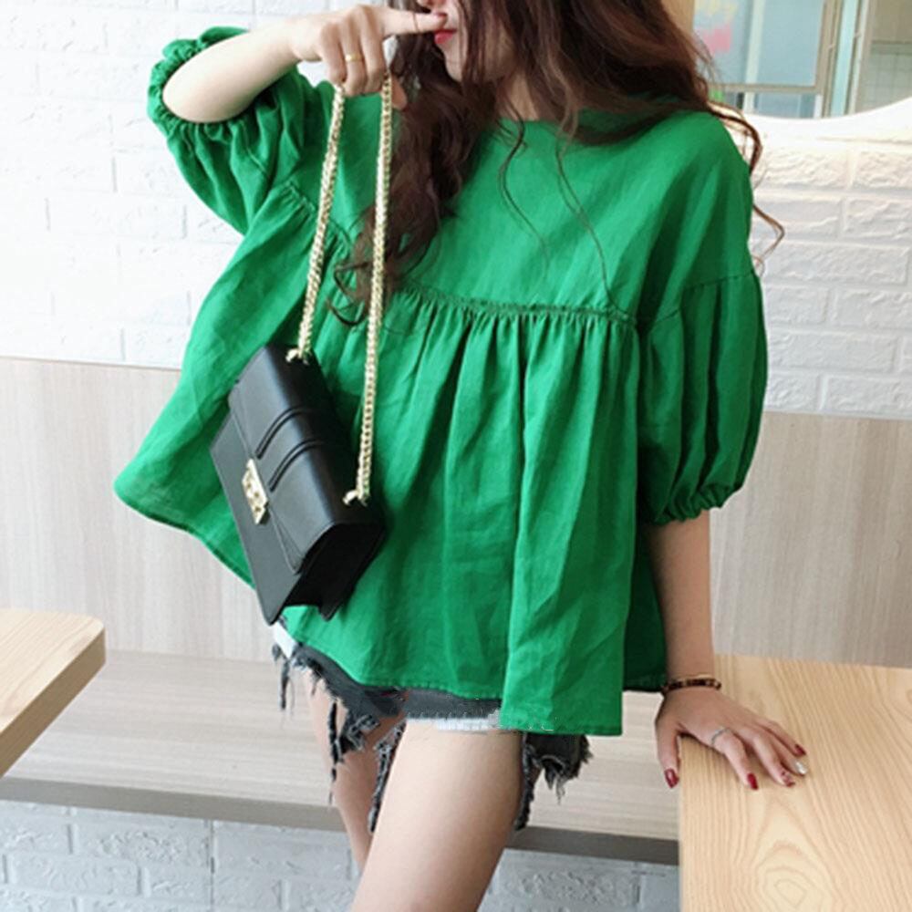 レディース トップス ブラウス 袖あり 5分袖 ボリューム袖 襟なし かわいい カジュアル おしゃれ ラフ ガーリー フリーサイズ 白 グリーン ローズレッド 無地 春 夏 秋 10代 20代 30代 40代 女性用 デート お出かけ 公園デビュー 女子会 お泊まり 休日 リゾート 旅行 着回し 普段使い ファッション コーデ スタイル 送料無料 | Rena 韓国ファッション レディースアパレル