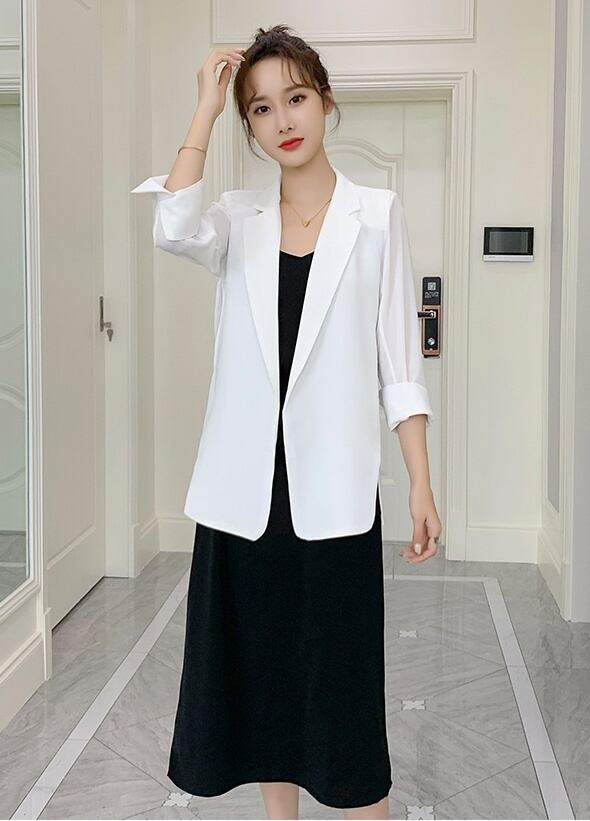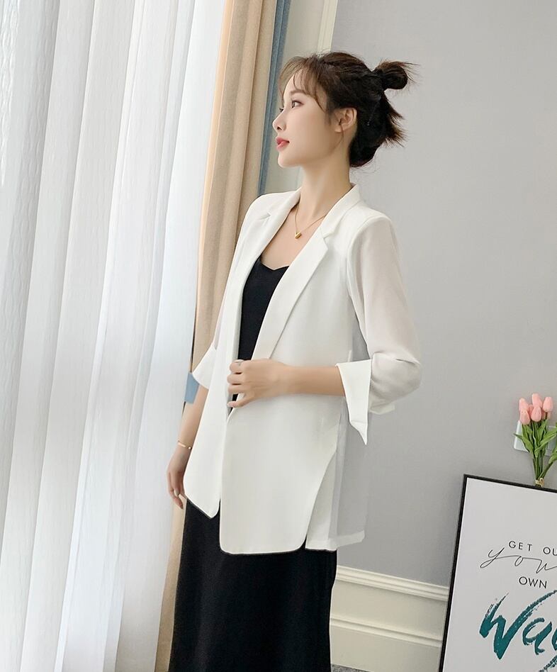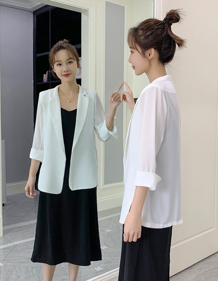レディース トップス ジャケット 袖あり 長袖 襟付き シフォン 薄手 シンプル 大人 上品 おしゃれ 大人女子 S M L XL 2XL 白 黒 グレー 無地 春 夏 秋 20代 30代 40代 50代 女性用 オフィス ビジネス OL 通勤 お出かけ 女子会 休日 着回し 普段使い 重ね着 ファッション コーデ スタイル 送料無料 | Rena 韓国ファッション レディースアパレル