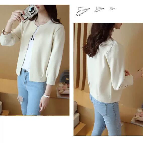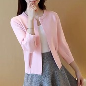 レディース トップス カーディガン ショート ショート丈 袖あり 長袖 Uネック 襟なし スリム 前開き きれいめ シンプル 大人 上品 おしゃれ 大人可愛い 大人女子 S M L XL 白 ホワイト 黒 ブラック ピンク 水色 春カラー 無地 春 20代 30代 女性用 ママ 通勤 デート 送料無料 | Rena 韓国ファッション レディースアパレル