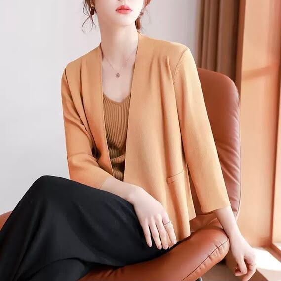 レディース トップス カーディガン 袖あり 長袖 Vネック 襟なし 前開き 大人可愛い きれいめ シンプル 大人 上品 おしゃれ お洒落 大人女子 M L XL 2XL 3XL 大きいサイズ 黒 ブラック オレンジ ネイビー アプリコット 無地 春 20代 30代 女性用 OL 通勤 女子会 普段使い 新作 送料無料 | Rena 韓国ファッション レディースアパレル