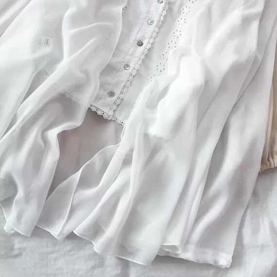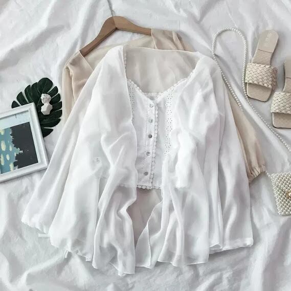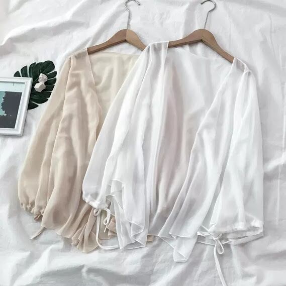 レディース トップス カーディガン 袖あり 長袖 Vネック 襟なし シフォン 前開き 透け感 ポリエステル 薄手 かわいい 大人可愛い 大人可愛い 大人女子 キュート ガーリー フリーサイズ 白 ホワイト 無地 夏 2021 10代 20代 女性用 ママ 通勤 学生 通学 デート お出かけ リゾート 旅行 普段使い 新作 送料無料 | Rena 韓国ファッション レディースアパレル