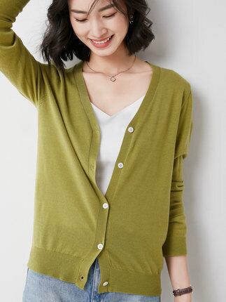 レディース トップス カーディガン 袖あり Vネック 薄手 大人可愛い きれいめ シンプル カジュアル 大人 上品 おしゃれ お洒落 大人女子 ラフ S M L XL 2XL 黒 ブラック 緑 グリーン 灰色 グレー オフホワイト カーキ 春 夏 秋 10代 20代 30代 40代 50代 女性用 パパ オフィス OL 通勤 デート お出かけ 公園デビュー 女子会 休日 着回し ファッション コーデ 送料無料 | Rena 韓国ファッション レディースアパレル