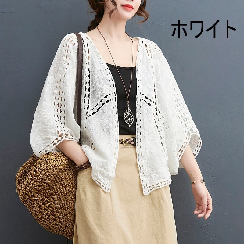 レディース トップス ブラウス カーディガン 7分袖 七分袖 大人可愛い おしゃれ お洒落 かっこいい レトロ アジアン エスニック 個性的 フリーサイズ 白 ホワイト ベージュ 花柄 春 夏 秋 10代 20代 お出かけ 休日 ファッション コーデ 送料無料 | Rena 韓国ファッション レディースアパレル