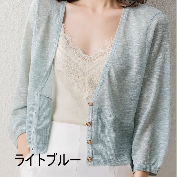 レディース トップス カーディガン 7分袖 七分袖 サマーニット かわいい 大人可愛い きれいめ シンプル カジュアル 大人 上品 おしゃれ かっこいい 大人女子 エレガント フリーサイズ 白 ホワイト 黒 ブラック 青 ブルー オフホワイト 水色 無地 春 夏 20代 30代 40代 オフィス ビジネス OL デート お出かけ 女子会 休日 旅行 ファッション コーデ 送料無料 | Rena 韓国ファッション レディースアパレル