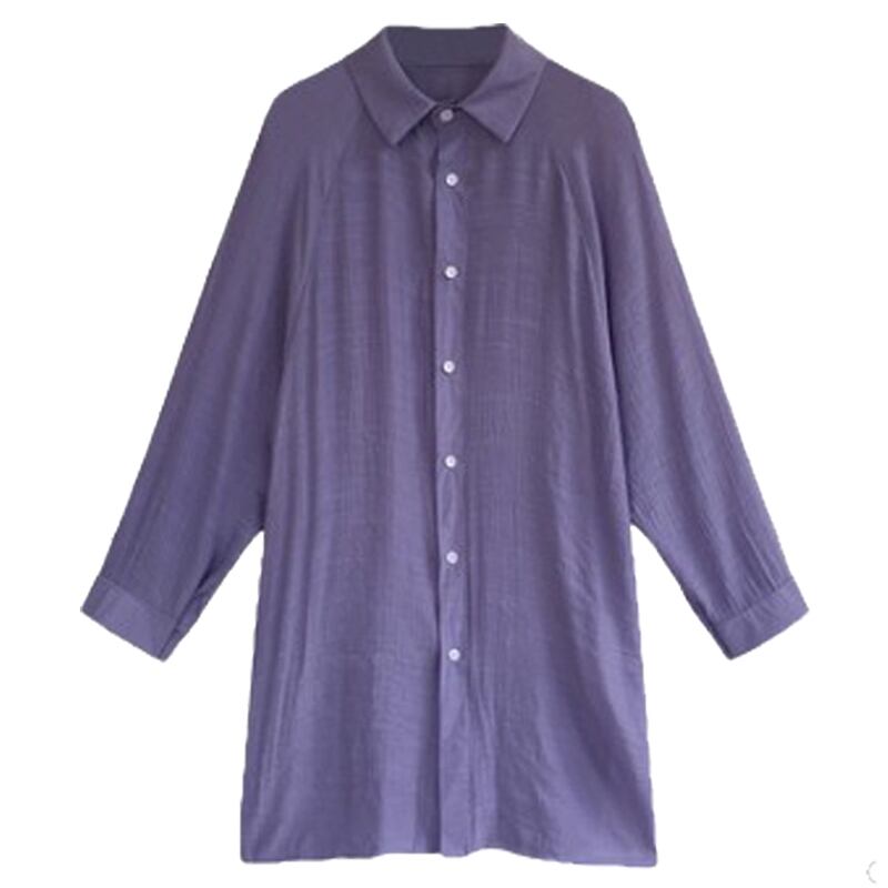 レディース トップス シャツ ブラウス 長袖 襟付き 薄手 かわいい きれいめ シンプル カジュアル 上品 おしゃれ かっこいい ラフ ルーズ M L XL 2XL 3XL 4XL ゆったり 白 ホワイト 青 ブルー 紫 パープル ピンク 無地 春 夏 秋 10代 20代 30代 OL 学生 通学 デート お出かけ 公園デビュー 女子会 休日 リゾート 旅行 海 着回し ファッション コーデ 楽ちん 送料無料 | Rena 韓国ファッション レディースアパレル