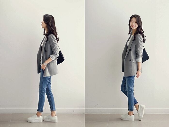 レディース アウター ジャケット 長袖 きれいめ シンプル 大人 上品 おしゃれ かっこいい 大人女子 クール S M L XL 黒 ブラック 灰色 グレー 無地 春 秋 20代 30代 40代 オフィス ビジネス OL 通勤 お出かけ 休日 着回し ファッション コーデ 送料無料 | Rena 韓国ファッション レディースアパレル