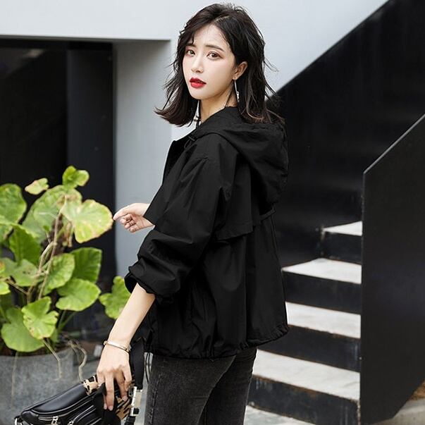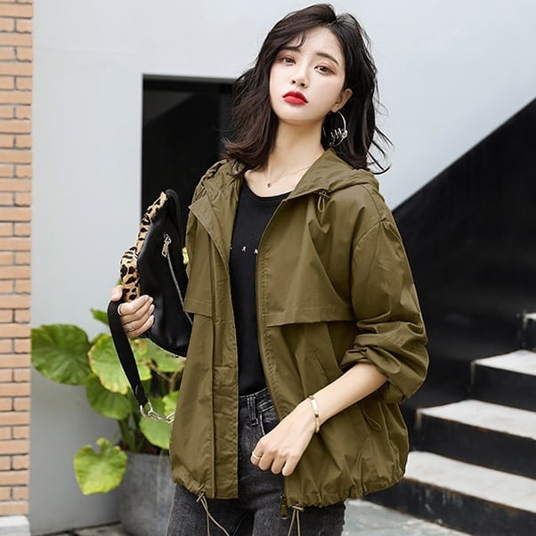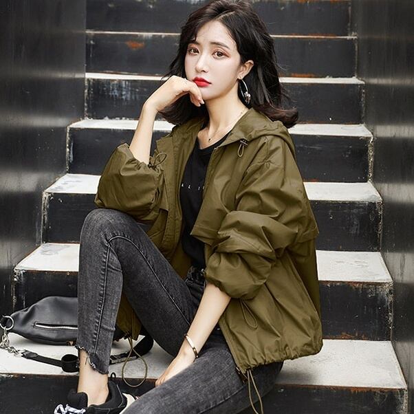 レディース アウター ブルゾン 長袖 フード付き シンプル カジュアル 大人 上品 おしゃれ お洒落 かっこいい 大人女子 ラフ クール S M L XL 黒 ブラック 緑 グリーン カーキ 春 秋 10代 20代 30代 40代 50代 女性用 ママ デート お出かけ 公園デビュー 女子会 休日 アウトドア 着回し 普段使い ファッション コーデ 送料無料 | Rena 韓国ファッション レディースアパレル