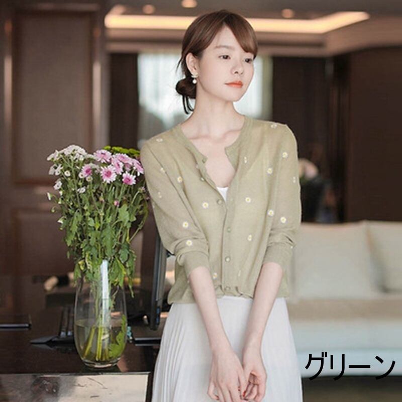レディース トップス カーディガン 袖あり 長袖 刺繍 かわいい 大人可愛い きれいめ 大人 上品 おしゃれ お洒落 大人女子 キュート ガーリー エレガント S M L 緑 グリーン ピンク 春カラー 花柄 春 夏 10代 20代 30代 40代 女性用 ママ デート お出かけ 公園デビュー 女子会 お泊まり 休日 ファッション コーデ モテ 送料無料 | Rena 韓国ファッション レディースアパレル