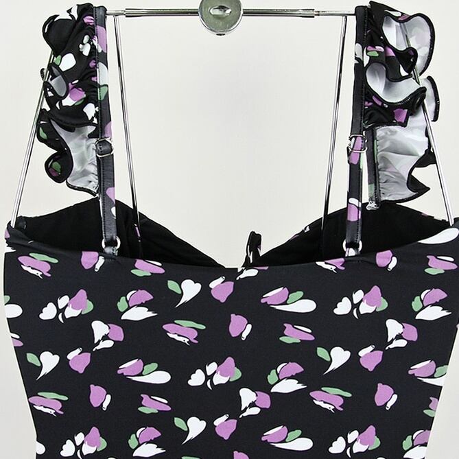 花びらのような柄が全面にプリントされたキュートな水着です。