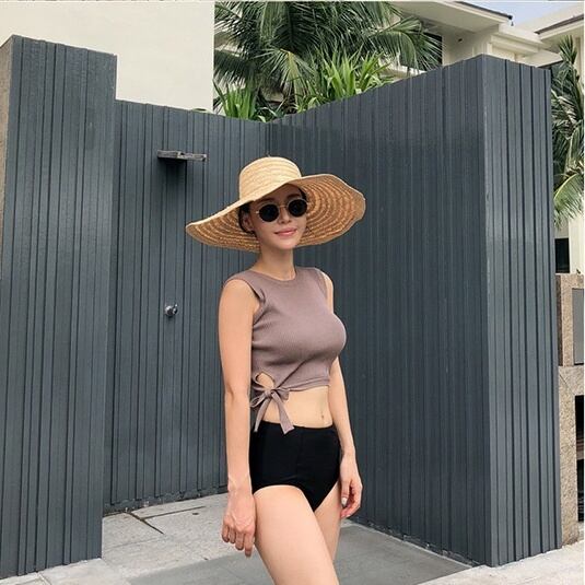 レディース 水着 ビキニ スイムウェア セパレート ビスチェ 体系カバー 切り替えデザイン ハイウエスト セット 上下セット 大人可愛い きれいめ シンプル カジュアル ナチュラル 大人 大人っぽい おしゃれ お洒落 主役級 女っぽ 個性的 M L XL 無地 30代 40代 海 ビーチ リゾート 旅行 体系カバー 美脚 脚長 高見え 送料無料 トレンド | Rena 韓国ファッション レディースアパレル