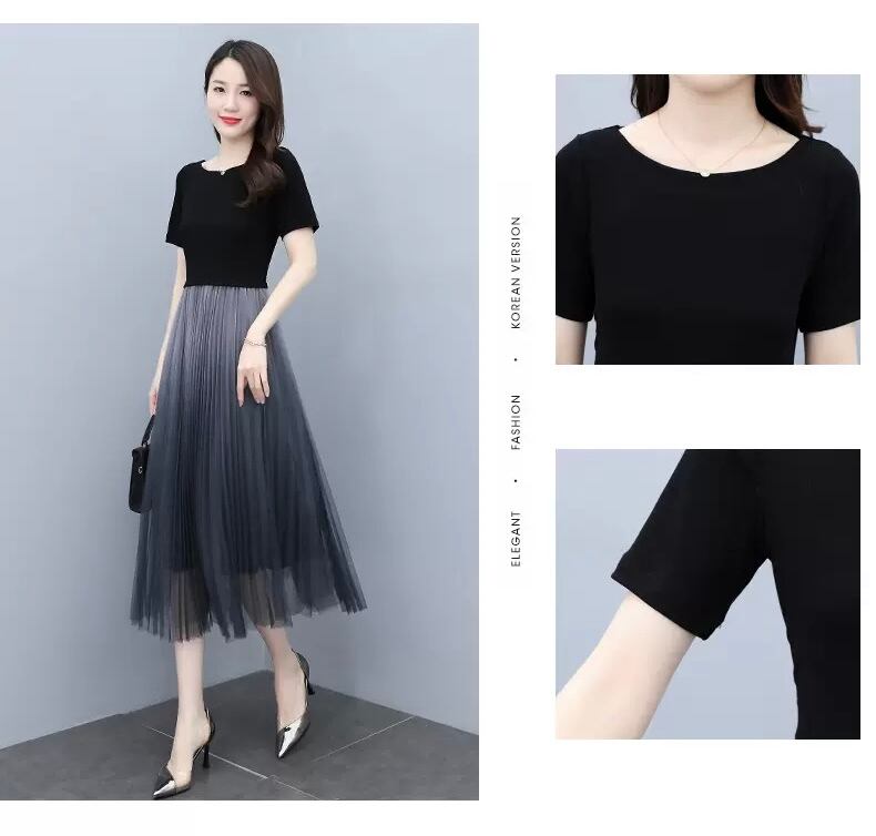 レディース ワンピース プリーツスカート ワンピドレス ミモレ丈 ロング丈 7分丈 半袖 ラウンドネック 襟なし Aライン 大人可愛い シンプル 大人 上品 おしゃれ お洒落 大人可愛い 大人女子 メンズライク エレガント M L XL 2XL 黒 ブラック 灰色 グレー 無地 春 夏 結婚式 二次会 20代 30代 40代 お出かけ 韓国 韓国系 ファッション 美脚 送料無料 | Rena 韓国ファッション レディースアパレル