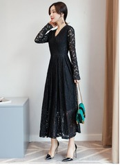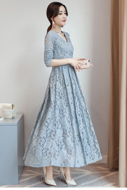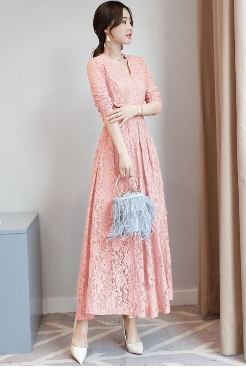 レディース ワンピース ワンピドレス ロング ロング丈 袖あり 7分袖 Vネック レース かわいい 大人可愛い きれいめ 大人 上品 おしゃれ お洒落 大人可愛い 大人女子 個性的 セクシー エレガント 主役級 存在感 M L XL 2XL 3XL 白 ホワイト 黒 ブラック 青 ブルー ピンク 春 誕生日 20代 30代 デート お出かけ 女子会 休日 パーティー イベント ファッション コーデ モテ 送料無料 | Rena 韓国ファッション レディースアパレル