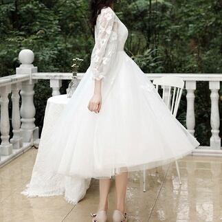 レディース ドレス dress ウェディングドレス 結婚式ドレス 花嫁ドレス ロングドレス 膝下 ロング ロング丈 ミディアム丈 7分袖 七分袖 長袖 レース シャーリング エレガント かわいい 大人可愛い きれいめ 華やか 上品 おしゃれ お洒落 主役級 お姫様 清楚 S M L XL 白 ホワイト 花柄 ウェディング ブライダル 結婚式 挙式 海外挙式 前撮り 後撮り 10代 20代 30代 40代 ホテル ガーデン 二の腕カバー 送料無料 インスタ映え