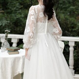 レディース ドレス dress ウェディングドレス 結婚式ドレス 花嫁ドレス ロングドレス 膝下 ロング ロング丈 ミディアム丈 7分袖 七分袖 長袖 レース シャーリング エレガント かわいい 大人可愛い きれいめ 華やか 上品 おしゃれ お洒落 主役級 お姫様 清楚 S M L XL 白 ホワイト 花柄 ウェディング ブライダル 結婚式 挙式 海外挙式 前撮り 後撮り 10代 20代 30代 40代 ホテル ガーデン 二の腕カバー 送料無料 インスタ映え | Rena 韓国ファッション レディースアパレル
