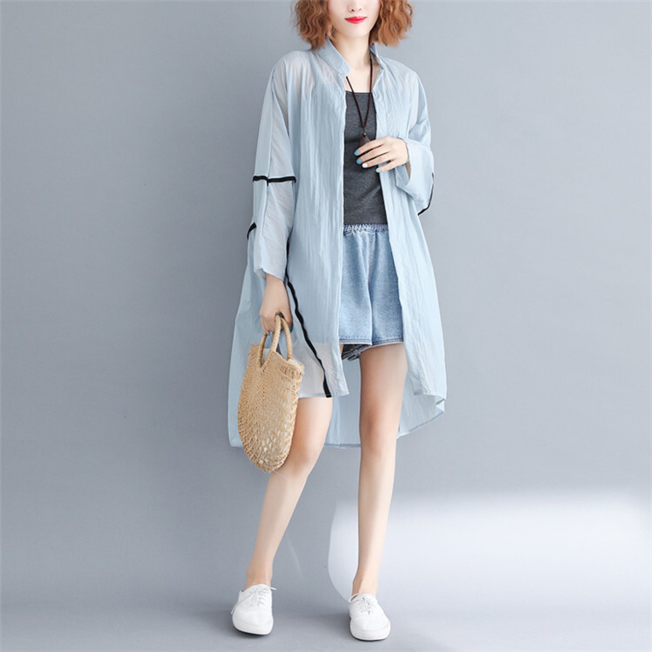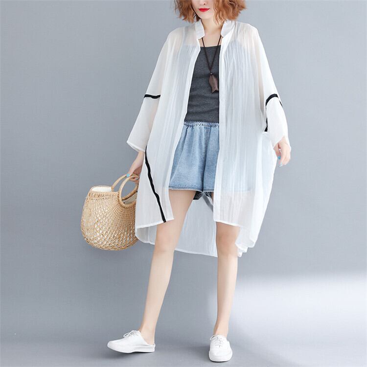 レディース アウター コート ミディアム丈 袖あり 長袖 透け感 大人可愛い シンプル カジュアル 大人 上品 おしゃれ お洒落 大人女子 ラフ クール 白 ホワイト 青 ブルー 水色 春 夏 10代 20代 30代 40代 女性用 ママ 学生 通学 デート お出かけ 公園デビュー 女子会 お泊まり 休日 着回し 普段使い ファッション コーデ モテ 体系カバー 送料無料 | Rena 韓国ファッション レディースアパレル