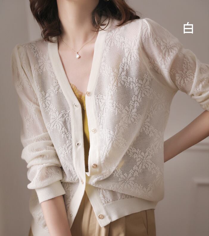 透け感のあるレース地が涼し気なカーディガン。