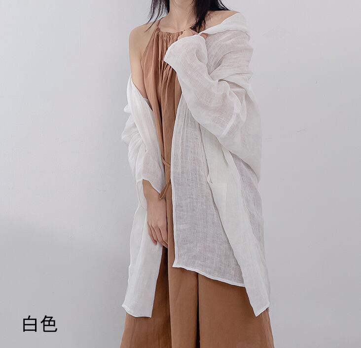 レディース トップス カーディガン 膝下 袖あり 長袖 ワイド 前開き 透け感 リネン かわいい 大人可愛い きれいめ シンプル カジュアル 大人 上品 おしゃれ 大人可愛い 大人女子 こなれ感 ラフ 抜け感 フリーサイズ 白 黒 ブラウン 大人カラー 無地 春 夏 10代 20代 30代 40代 50代 女性用 デート お出かけ 女子会 休日 旅行 ファッション コーデ スタイル 送料無料 | Rena 韓国ファッション レディースアパレル