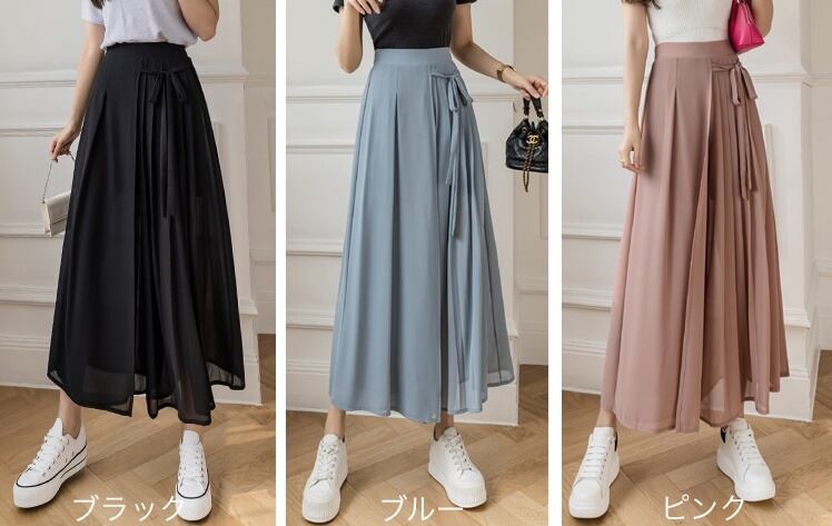 レディース ボトムス パンツ ズボン ワイドパンツ ガウチョパンツ ロング ロング丈 ワイド ガウチョ 大人可愛い きれいめ シンプル カジュアル 大人 おしゃれ お洒落 大人可愛い 大人女子 こなれ感 とろみ感 S M L XL 黒 ブラック 青 ブルー ピンク 無地 20代 30代 40代 50代 ビジネス 通勤 デート お出かけ 休日 普段使い コーデ スタイル 送料無料 | Rena 韓国ファッション レディースアパレル