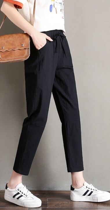 レディース ボトムス ズボン クロップドパンツ 9分丈 アンクル丈 細身 ウエストリボン 大人可愛い シンプル カジュアル おしゃれ お洒落 こなれ感 ラフ S M L XL 2XL 3XL 白 ホワイト 黒 ブラック ネイビー 無地 夏 10代 20代 30代 お出かけ 休日 運動 旅行 普段使い 楽ちん 送料無料 | Rena 韓国ファッション レディースアパレル