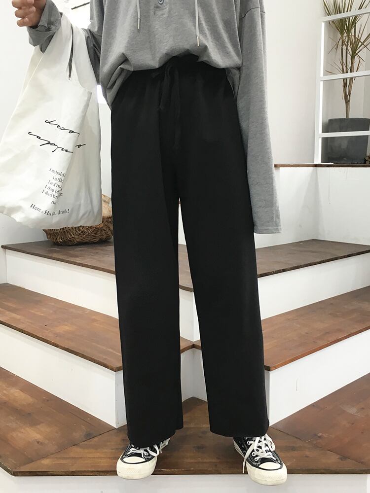 レディース ボトムス パンツ ズボン ワイドパンツ ストレートパンツ ストレート ワイド ウエストリボン かわいい カジュアル お洒落 大人可愛い 大人女子 こなれ感 ラフ 抜け感 フリーサイズ ゆったり 黒 ブラック 灰色 グレー 無地 オールシーズン 10代 20代 30代 40代 お出かけ 休日 普段使い コーデ 楽ちん 送料無料 ゆったり | Rena 韓国ファッション レディースアパレル