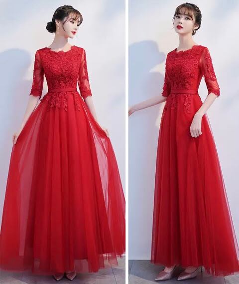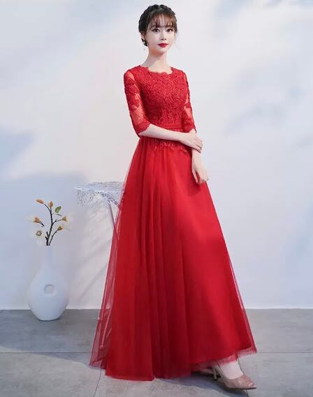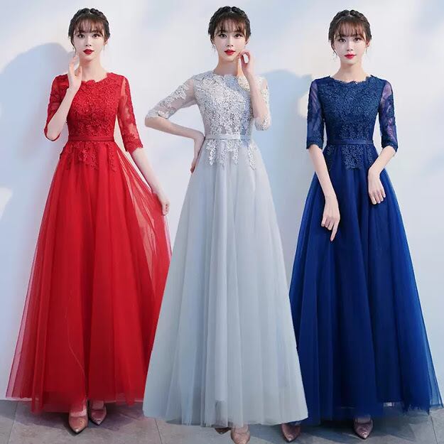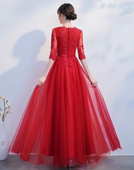 レディース ドレス dress ワンピース パーティードレス 二次会ドレス 披露宴ドレス カラードレス ロングドレス 演奏会ドレス 演奏会用ドレス ステージドレス 舞台ドレス ロング ロング丈 袖あり 7分袖 Uネック 襟なし レース チュール ファスナー 透け感 S M L XL 2XL 3XL 4XL レッド グレー ネイビー シルバー オールシーズン 二次会 2次会 披露宴 お呼ばれ パーティー 演奏会 発表会 ピアノ ステージ 20代 30代 女性用 ホテル 送料無料 高見え | Rena 韓国ファッション レディースアパレル