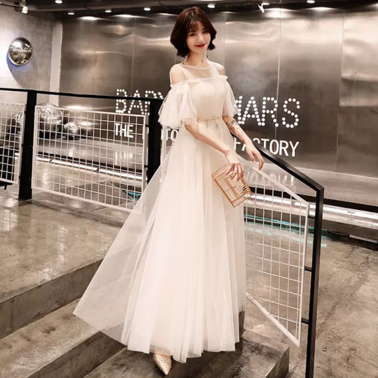 ドレス dress パーティードレス パーティドレス 結婚式のドレス 二次会ドレス 披露宴ドレス ロングドレス 膝丈ドレス 演奏会ドレス 演奏会用ドレス Aラインドレス 膝丈 ひざ丈 ロング ロング丈 袖あり オフショルダー オフショル チュール 透け感 ポリエステル フォーマル かわいい 大人可愛い S M L XL 2XL 白 ホワイト 灰色 グレー 無地 シーズンレス 二次会 2次会 披露宴 パーティー 20代 30代 ホテル ガーデン 送料無料 | Rena 韓国ファッション レディースアパレル