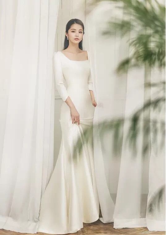 レディース ドレス dress ウェディングドレス パーティードレス 結婚式ドレス 披露宴ドレス 花嫁ドレス ロングドレス マーメイドドレス ロング ロング丈 7分袖 スクエアネック フォーマル エレガント シンプル 大人 XS S M L XL 白 ホワイト 無地 シーズンレス ウェディング ブライダル 結婚式 二次会 挙式 海外挙式 前撮り 20代 30代 ホテル ガーデン 送料無料 | Rena 韓国ファッション レディースアパレル