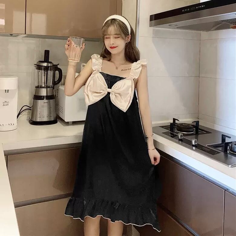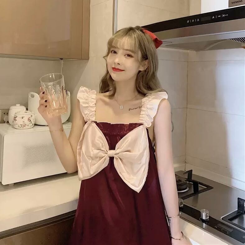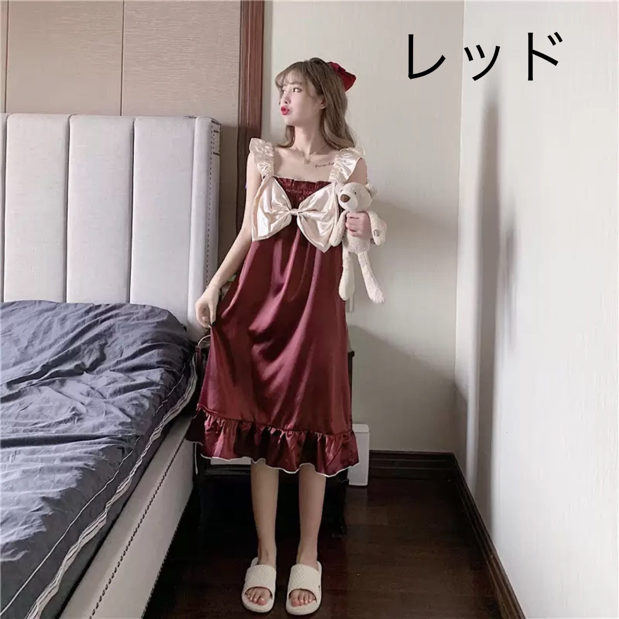 レディース パジャマ 寝巻き ナイトウェア 膝丈 ひざ丈 袖なし ノースリーブ スクエアネック 裾フレア リボン かわいい 大人女子 ラブリー キュート セクシー フリーサイズ ゆったり 黒 ブラック 赤 レッド 緑 グリーン 無地 夏 2021 10代 20代 女性用 ママ マタニティ お泊まり 休日 楽ちん モテ 送料無料 ゆったり | Rena 韓国ファッション レディースアパレル