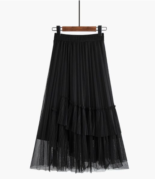 チュールがアシンメトリーになっているミドル丈のスカートです。