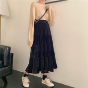 段が入っているプリーツロングスカートです。