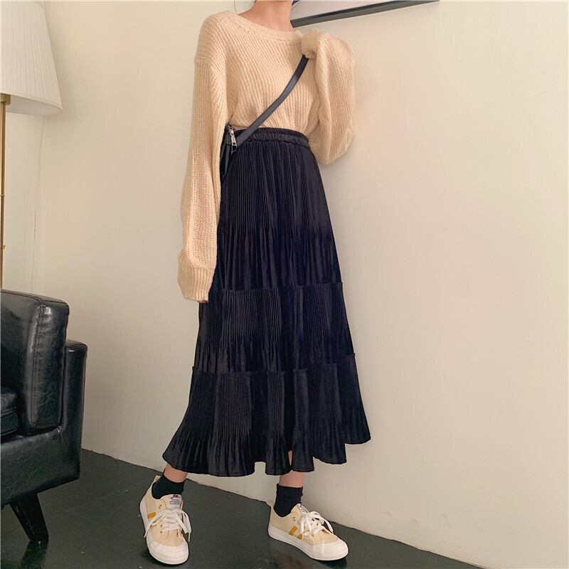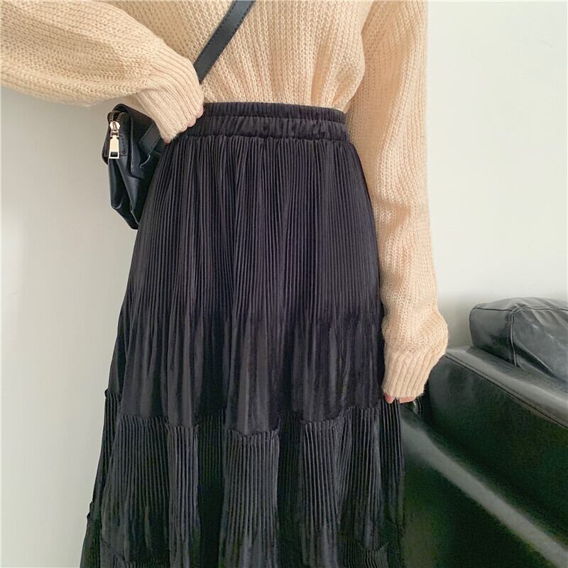レディース スカート ボトムス ロング ロング丈 ティアード プリーツ ハイウエスト かわいい 大人可愛い きれいめ シンプル カジュアル 大人 上品 おしゃれ お洒落 大人女子 こなれ感 XS S M L XL 黒 ブラック ベージュ 無地 秋 冬 20代 30代 40代 オフィス ビジネス OL 通勤 デート お出かけ 女子会 イベント 旅行 海 プール 着回し 韓国系 オルチャン ファッション コーデ スタイル 楽ちん 体系カバー 美脚 定番 送料無料 トレンド 流行 | Rena 韓国ファッション レディースアパレル
