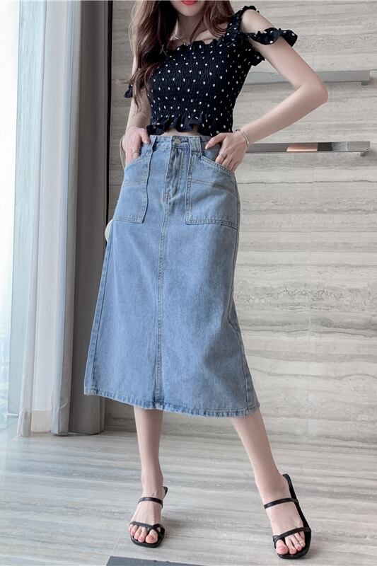 レディース デニムスカート ボトムス ひざ下丈 かわいい 大人可愛い きれいめ シンプル カジュアル 大人 上品 おしゃれ お洒落 かっこいい 大人可愛い 大人女子 こなれ感 ルーズ 個性的 セクシー エレガント とろみ感 S M L XL 2XL 3XL 4XL 5XL 青 ブルー 春 夏 20代 30代 40代 オフィス OL 通勤 学生 お出かけ 休日 着回し 普段使い 韓国系 オルチャン コーデ スタイル 楽ちん 体系カバー 脚長 ファッション 定番 送料無料 | Rena 韓国ファッション レディースアパレル