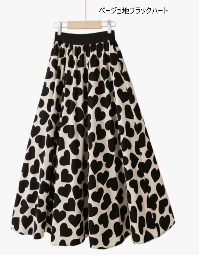 レディース スカート ハート柄 ボトムス ミモレ ミモレ丈 フレア セミフレア 伸縮性 ウエストゴム かわいい 大人可愛い きれいめ シンプル 大人 上品 おしゃれ お洒落 かっこいい 大人可愛い こなれ感 ルーズ 個性的 セクシー エレガント とろみ感 フリーサイズ 白 ホワイト 黒 ブラック ベージュ 柄 春 夏 20代 30代 40代 オフィス OL 通勤 学生 お出かけ 女子会 休日 着回し 普段使い 韓国系 コーデ スタイル 楽ちん 体系カバー 定番 送料無料 トレンド インスタ映え | Rena 韓国ファッション レディースアパレル