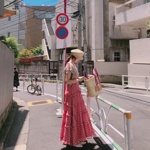 レディース ワンピース ティアードワンピース マキシ マキシ丈 綿 リネン かわいい 大人可愛い きれいめ シンプル 大人 上品 おしゃれ お洒落 かっこいい 大人可愛い こなれ感 ルーズ 個性的 セクシー エレガント とろみ感 S M L XL 赤 レッド 青 ブルー チェック柄 春 夏 20代 30代 40代 オフィス OL 通勤 学生 お出かけ 女子会 休日 着回し 普段使い 韓国系 オルチャン ファッション コーデ スタイル 楽ちん 体系カバー 定番 送料無料 トレンド インスタ映え | Rena 韓国ファッション レディースアパレル