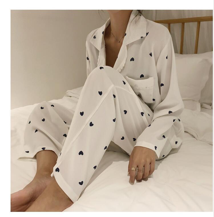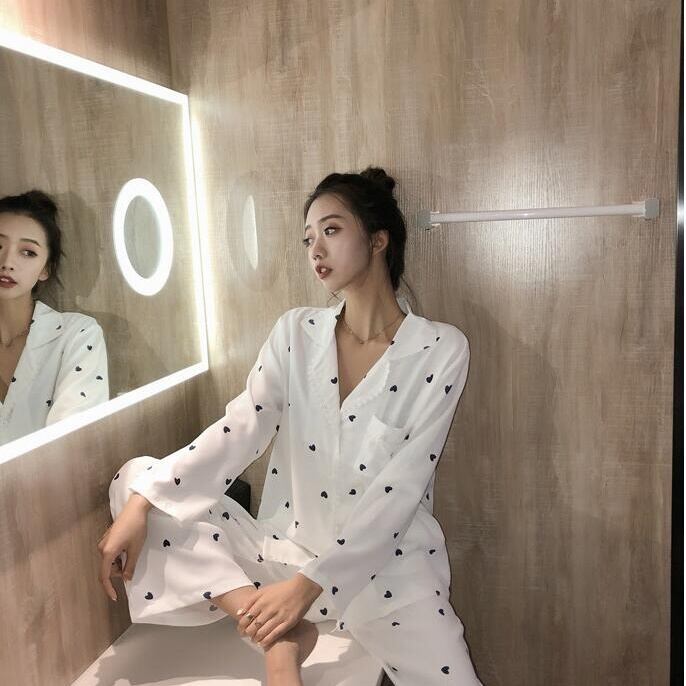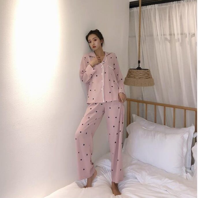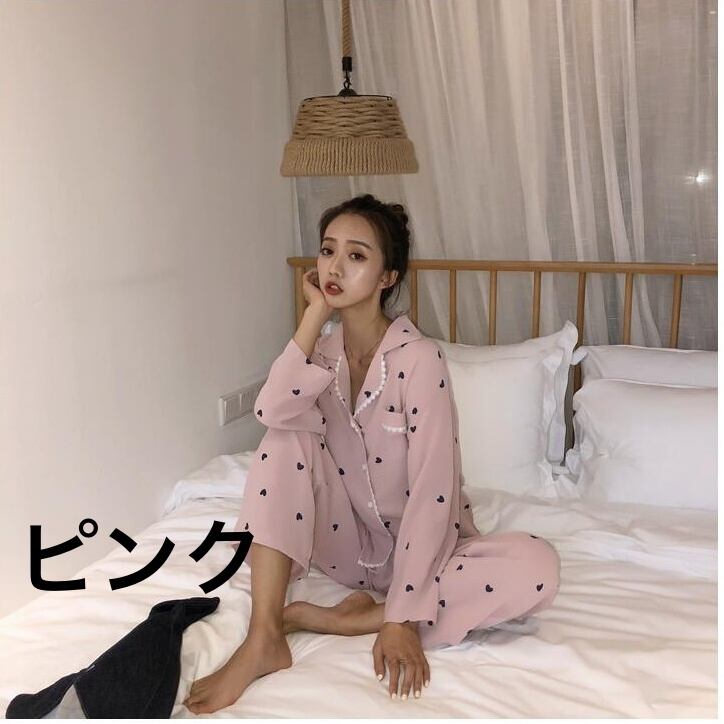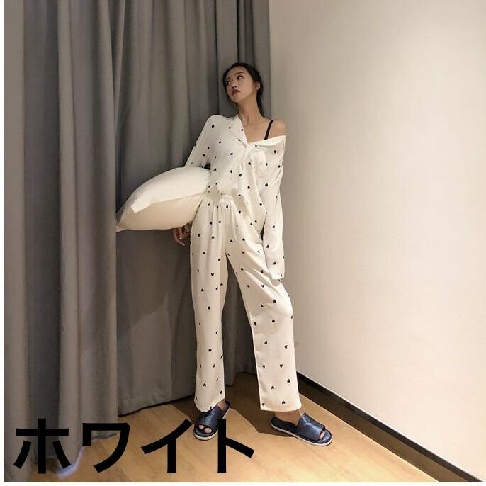 レディース パジャマ 部屋着 寝巻き ナイトウェア 袖あり 長袖 Vネック 綿 上下セット かわいい 大人可愛い きれいめ シンプル カジュアル 大人 上品 おしゃれ お洒落 キュート M L XL 2XL ゆったり 白 ホワイト ピンク 柄 春 夏 10代 20代 30代 お泊まり 韓国 韓国系 オルチャン ファッション コーデ スタイル モテ 定番 送料無料 トレンド 流行 | Rena 韓国ファッション レディースアパレル