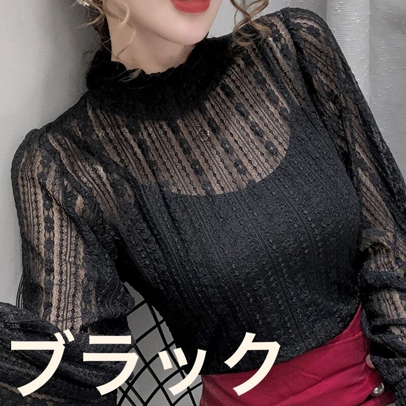 ハイネックの総レーストップスです。