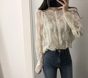 レディース トップス ブラウス 袖あり 長袖 ラウンドネック 細身 レース 刺繍 透け感 シースルー 綿 かわいい 大人可愛い きれいめ シンプル カジュアル 大人 上品 おしゃれ お洒落 大人可愛い 大人女子 セクシー S M L XL ワンサイズ 白 ホワイト 黒 ブラック 柄 春 秋 10代 20代 30代 オフィス ビジネス OL 通勤 通学 デート お出かけ 女子会 お泊まり 韓国 韓国系 オルチャン ファッション コーデ スタイル 楽ちん モテ 送料無料 トレンド 流行