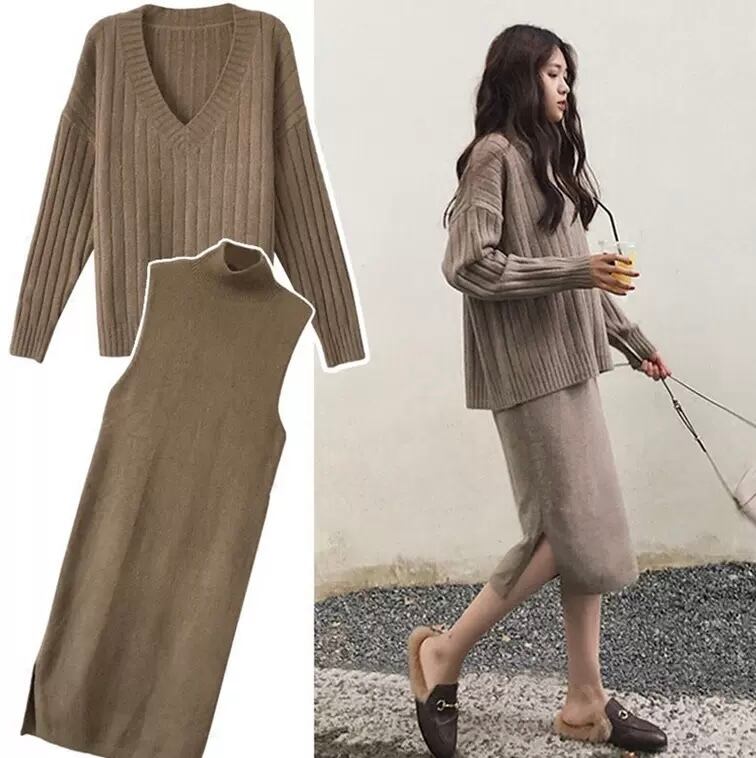 Vネックのニットと、タートルネックのニットワンピースのお得な2点セット