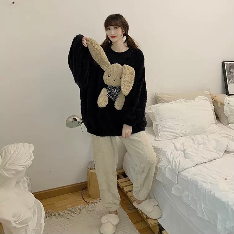 レディース トップス ルームウェア パジャマ トレーナー 部屋着 寝巻き ナイトウェア 袖あり 長袖 ラウンドネック 襟なし もこもこ モコモコ ふわふわ 厚手 かわいい 大人可愛い 大人可愛い ラブリー キュート 抜け感 フリーサイズ ゆったり 黒 ブラック アニマル柄 秋 冬 2020 10代 20代 女性用 女の子 お泊まり 休日 普段使い 楽ちん あったか 暖かい 送料無料 ゆったり | Rena 韓国ファッション レディースアパレル