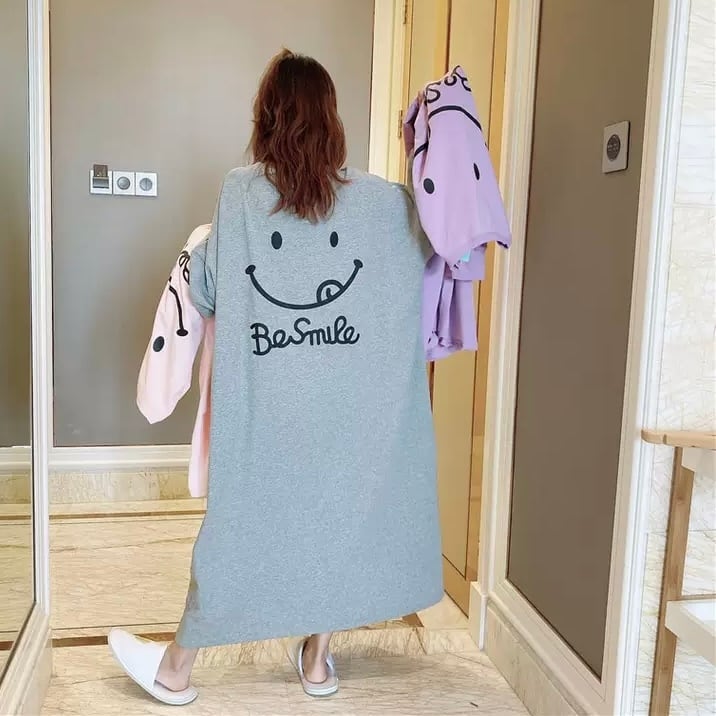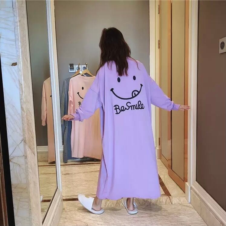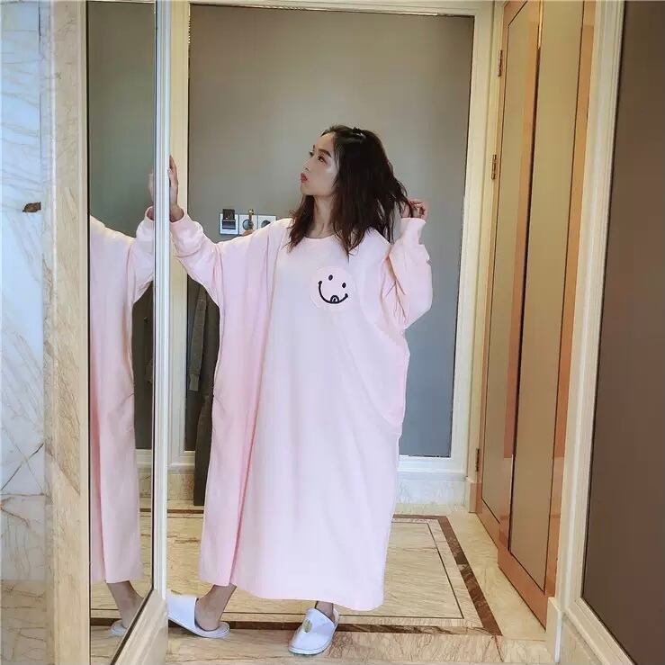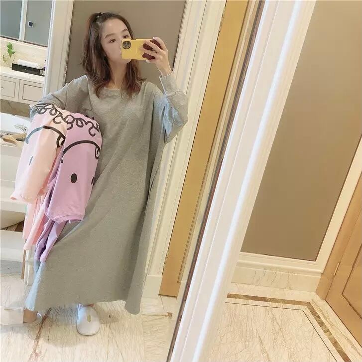 レディース ルームウェア パジャマ ロング ロング丈 袖あり 長袖 ドルマンスリーブ ドロップショルダー 萌袖 ラウンドネック ワイド かわいい 大人可愛い ラフ ラブリー キュート ルーズ 抜け感 大きいサイズ フリーサイズ 大きめ 紫 パープル グレー ピンク 無地 春 10代 20代 女性用 ママ マタニティ 女の子 お泊まり 休日 普段使い 楽ちん モテ 体系カバー 送料無料 | Rena 韓国ファッション レディースアパレル