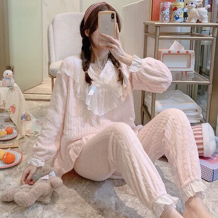 お家時間も可愛く過ごせる、レース&フリルデザインのパジャマです。