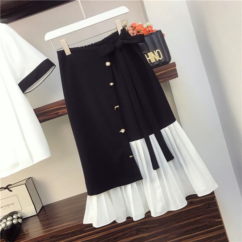 レディース トップス スカート ボトムス セットアップ プリーツスカート 膝丈 ひざ丈 半袖 フレア Aライン レース 2点セット 大人可愛い きれいめ 大人 上品 おしゃれ お洒落 大人女子 個性的 エレガント 主役級 存在感 L XL 2XL 3XL 4XL 白 ホワイト 黒 ブラック モノトーン 夏 10代 20代 30代 女性用 デート お出かけ 公園デビュー 女子会 休日 ファッション コーデ モテ 送料無料 インスタ映え | Rena 韓国ファッション レディースアパレル